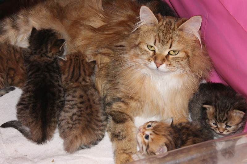 3-tygodniowe kocięta z mamą